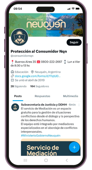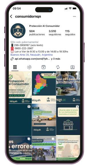 SERVICIOS Solicitá tu inspección Delegaciones Biblioteca Virtual Monitor de Alquileres Registro Público de Administradores de Consorcios Registro de Infractores Programa Consumo Respeto Fomentamos la adopción de hábitos de consumo consciente en la Provincia de Neuquén, con el fin de apoyar la sostenibilidad, la salud pública, la educación y el uso eficiente de los recursos naturales en los ámbitos público y privado. Ingresa aquí REDES SOCIALES AUTORIDADES Cr. Rolando FigueroaGobernador Dr. Jorge TobaresMinistro de Gobierno Juan G. Grandi Subsecretario de Gobierno, Justicia y Derechos Humanos Pablo TomasiniDirector Provincial de Protección al Consumidor NOVEDADES UPCN firmó el acuerdo salarial para 2026 Leer nota La Provincia fortalece dispositivos que dan contención a niñas y niños Leer nota Se firmó el acuerdo salarial con el gremio ATE Leer nota Todas las noticias 0800-222-2667 sólo mensajes 2995958167 sólo mensajes