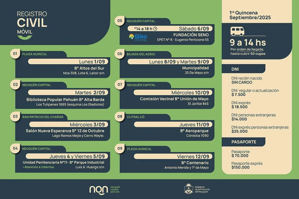 Registro Civil Móvil: cronograma para la primera quincena de septiembre