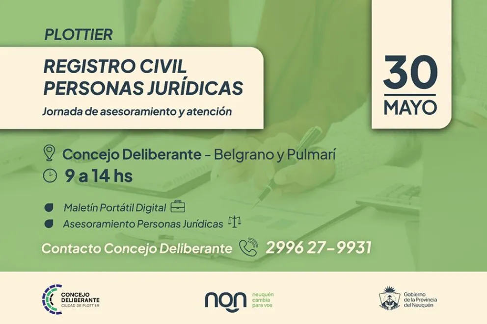 Personas jurídicas y Registro Civil atenderán en Plottier