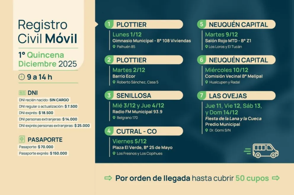 El Registro Civil Móvil presenta su cronograma para la primera quincena de diciembre 28 noviembre, 2025
